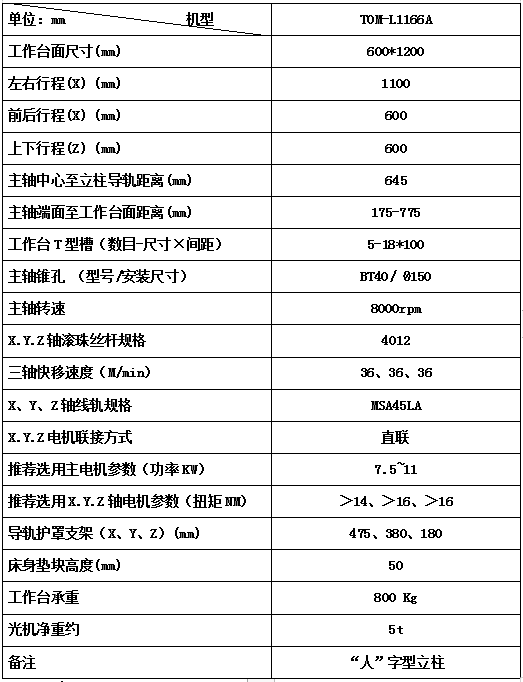 光机技术参数